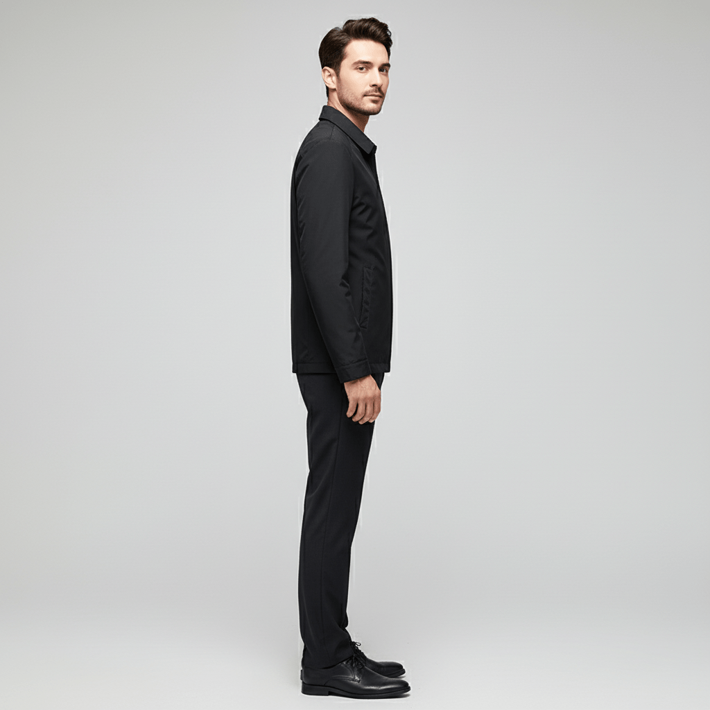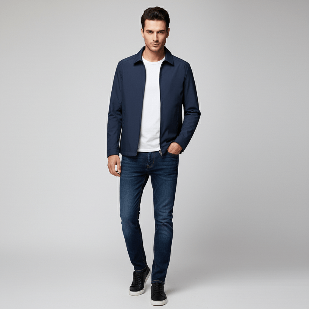 Stay sharp and comfortable with this men’s casual jacket featuring a full zip closure and sleek point collar. Its lightweight build makes it perfect for layering, while the regular fit ensures easy movement without sacrificing style. From weekday commutes to weekend outings, this jacket delivers effortless sophistication.