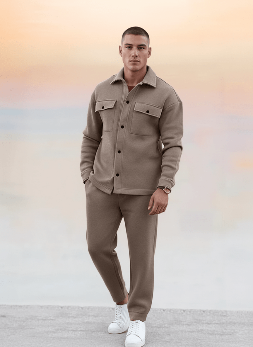 Elevate your everyday look with the Toupen Layer 2 piece athleisure set, where sleek design meets effortless comfort. Built for men who demand style without compromising movement, it’s tailored for everything from coffee runs to evening strolls. With its clean lines and refined fit, Toupen blurs the line between leisurewear and street-ready style.