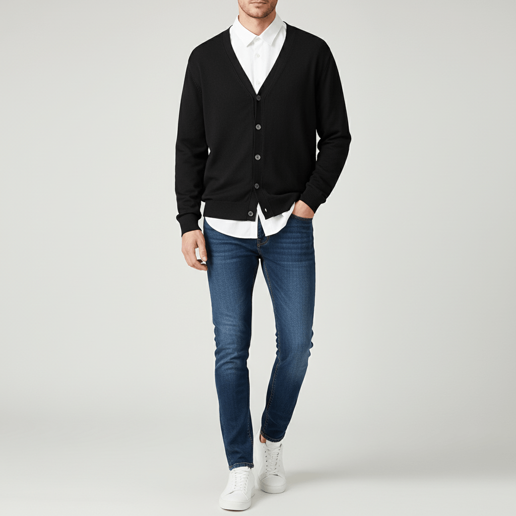 Elevate your everyday with a cardigan that blends comfort and sophistication. Crafted from a rich cashmere wool blend, it drapes effortlessly with a relaxed fit while offering timeless style. The V-neckline makes it ideal for layering over a crisp shirt or under a tailored jacket, giving you year-round versatility.